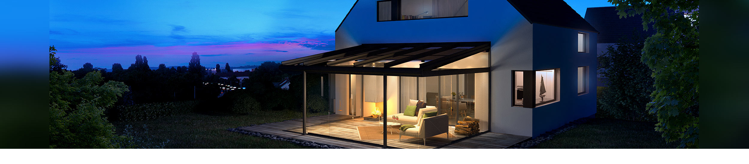 Passage continu vers l'extérieur avec l'élégante Oasis de verre® - baignée de lumière et primée